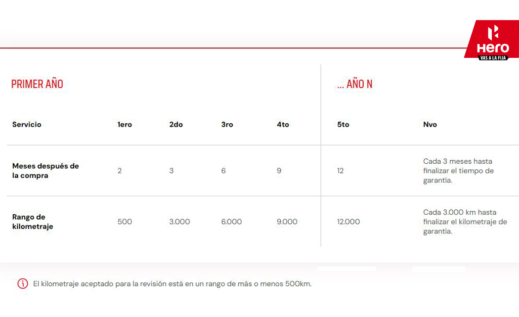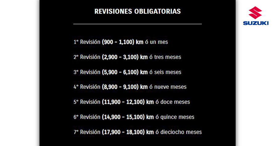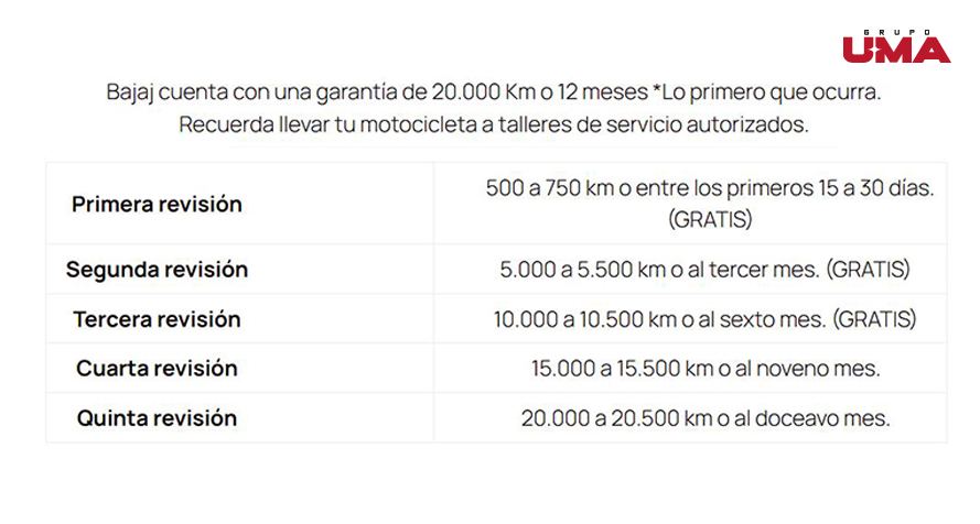 Las revisiones (1000, 6000, 12000 km) no tienen ningún costo por concepto de “MANO DE OBRA”, solo deberá pagar los materiales que sean necesarios.